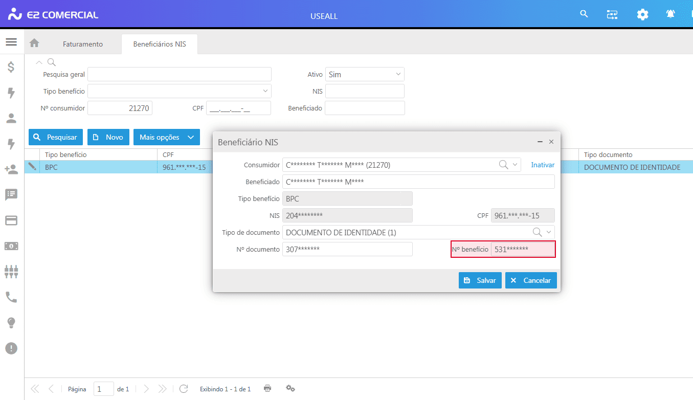 - Caminho: E2 Com > Faturamento > Outros > Beneficiários NIS.