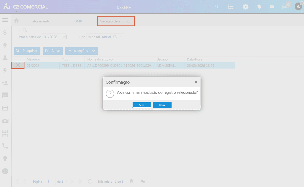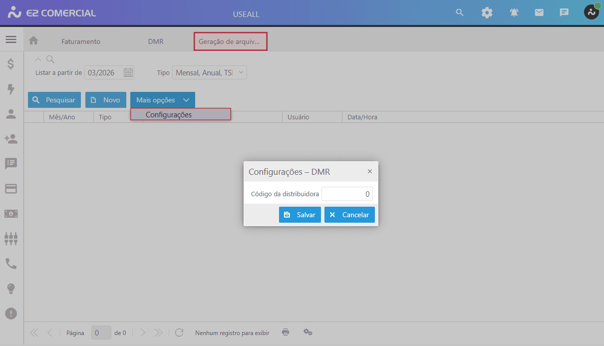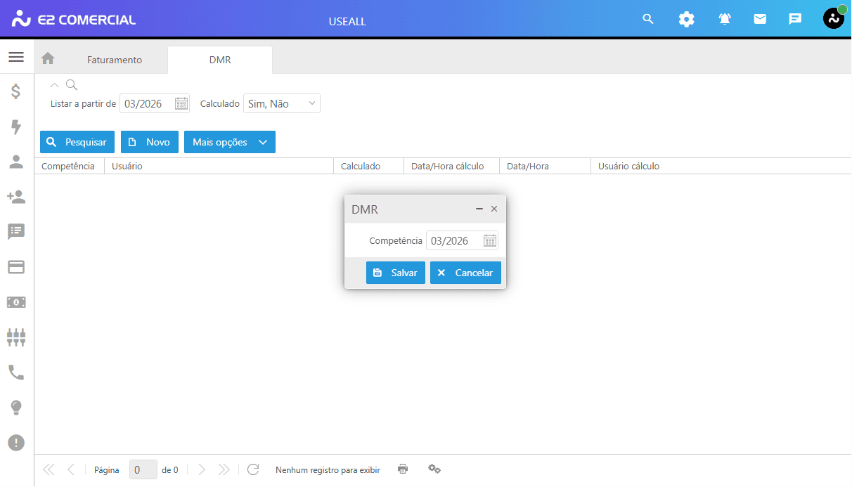 Caminho: E2 Comercial > Faturamento > DMR > Novo.