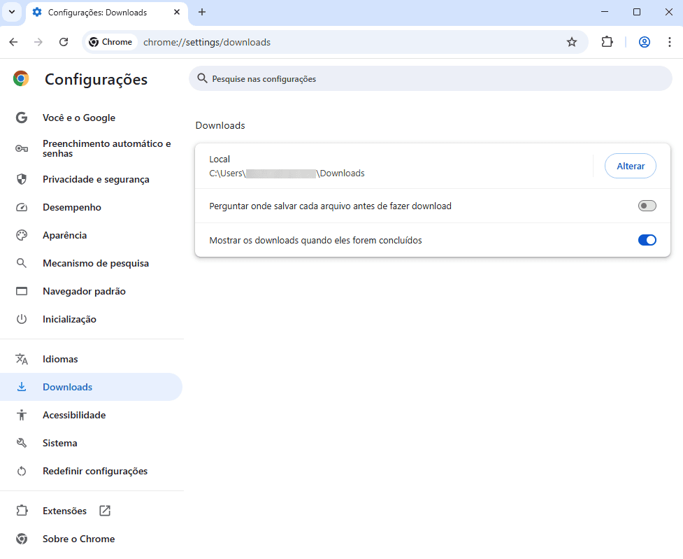 O download automático após a geração concluída do arquivo, é uma configuração do navegador, para alterá-la ou definir em qual pasta salvar o documento, acessar as configurações de download do navegador o qual está sendo utilizado.