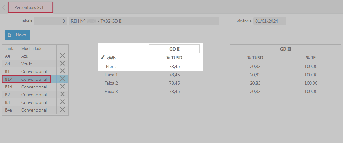 E por fim existe uma linha com 1 kWh restante faturado com a tarifa plena homologada B1r pois não foi abatido.