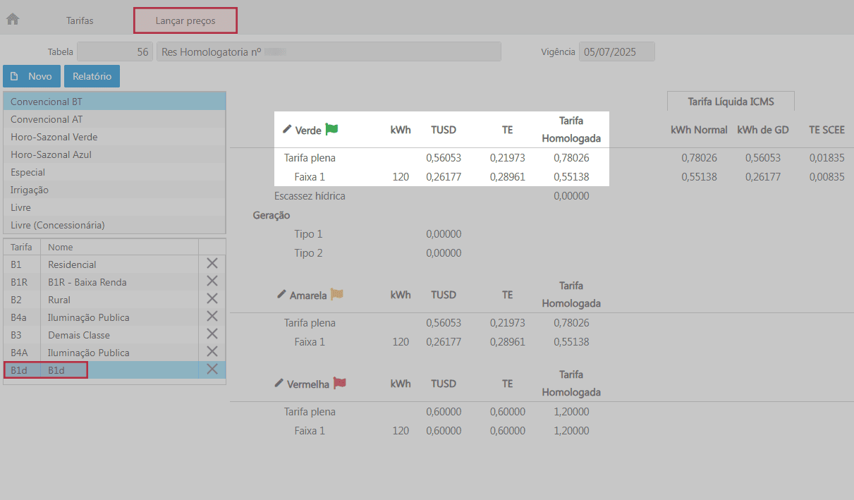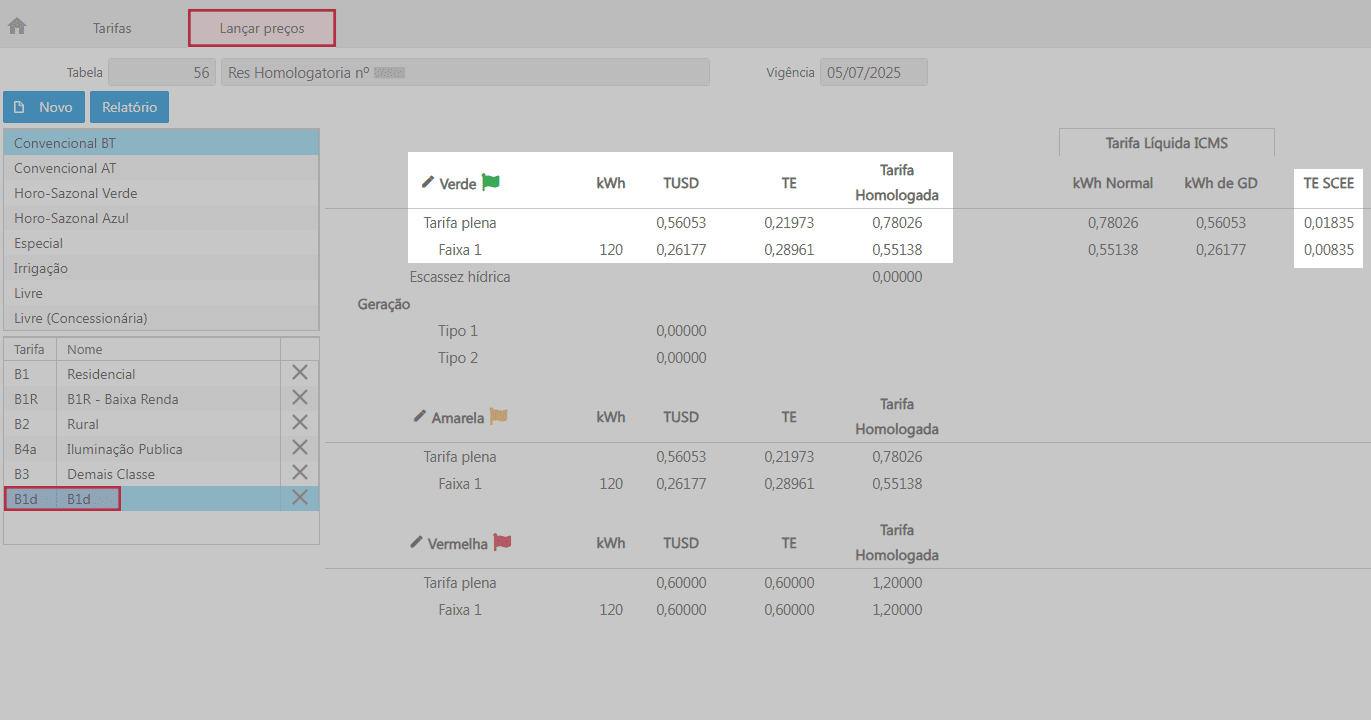 O restante do consumo, 60 kWh, é faturado com base nos valores das tarifas plenas B1d correspondentes a TUSD e TE.