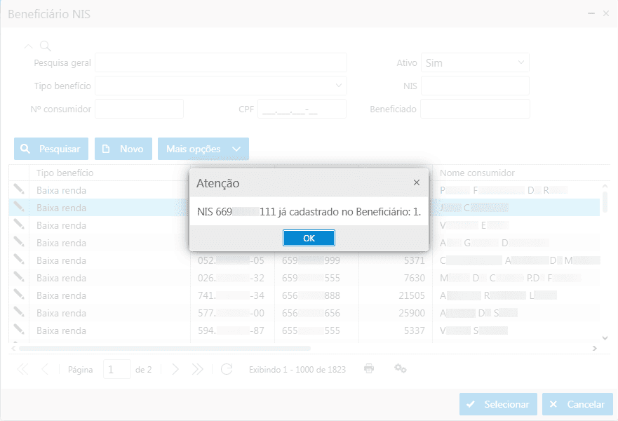 - Busca por meio do beneficiário se existe vínculo a outro cadastro de benefício ativo, o que não deve existir.