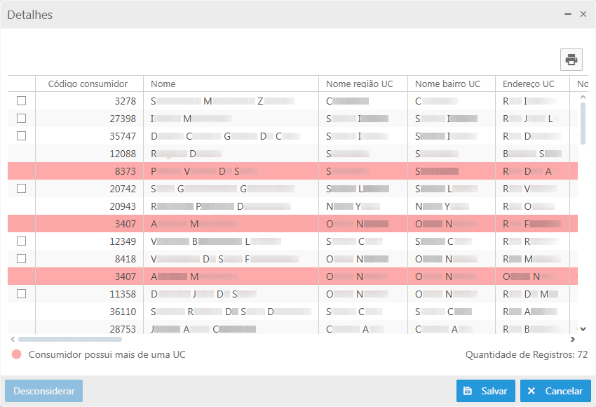 apresentado no início de cada linha, para desconsiderar, selecionar a linha da UC e em seguida clicar em Desconsiderar.