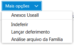 O botão Mais opções permite acessar outras quatro funções, sendo elas Anexos Useall, Indeferir, Lançar deferimento e Análise arquivo da Família.