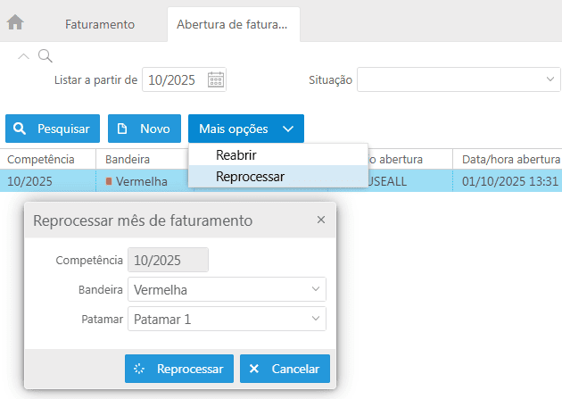 Caso este procedimento seja realizado durante uma competência em aberto, será necessário reprocessar o mês para que o sistema atualize as informações. Dessa forma, será possível faturar as UCs aptas com a nova tarifa.