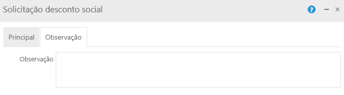 Na aba seguinte, Observação, existe um único campo para inserção de informações adicionais a respeito da solicitação.