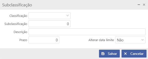 - Alterar data limite: define se a subclassificação permitirá a alteração do prazo.