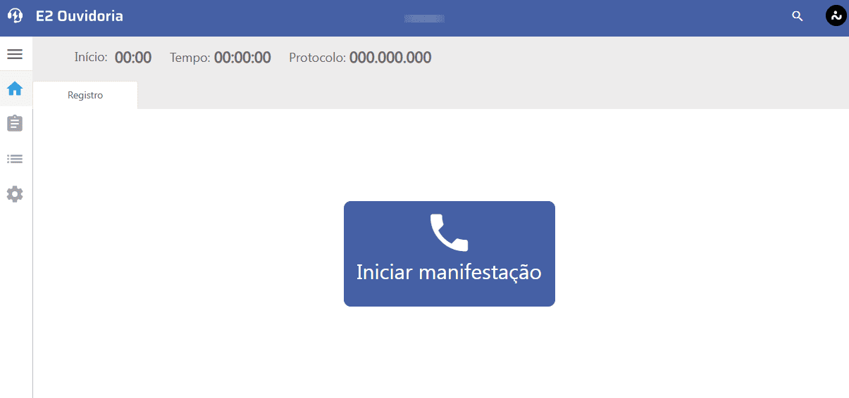 Para registrar uma manifestação deve-se acessar a o módulo Registros em seguida clicar em Iniciar manifestação.