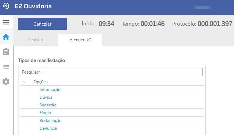 O sistema E2 Ouvidoria tem seus processos centralizados, do início ao fim, dentro do próprio sistema. Assim as manifestações são registradas e analisadas sem que seja necessário alternar entre sistemas.