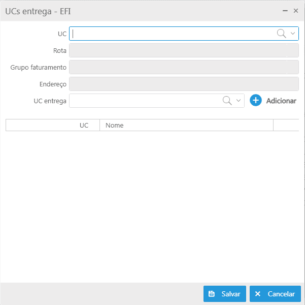 Para adicionar novas UCs, buscar através do campo UC entrega e clicar em Adicionar.