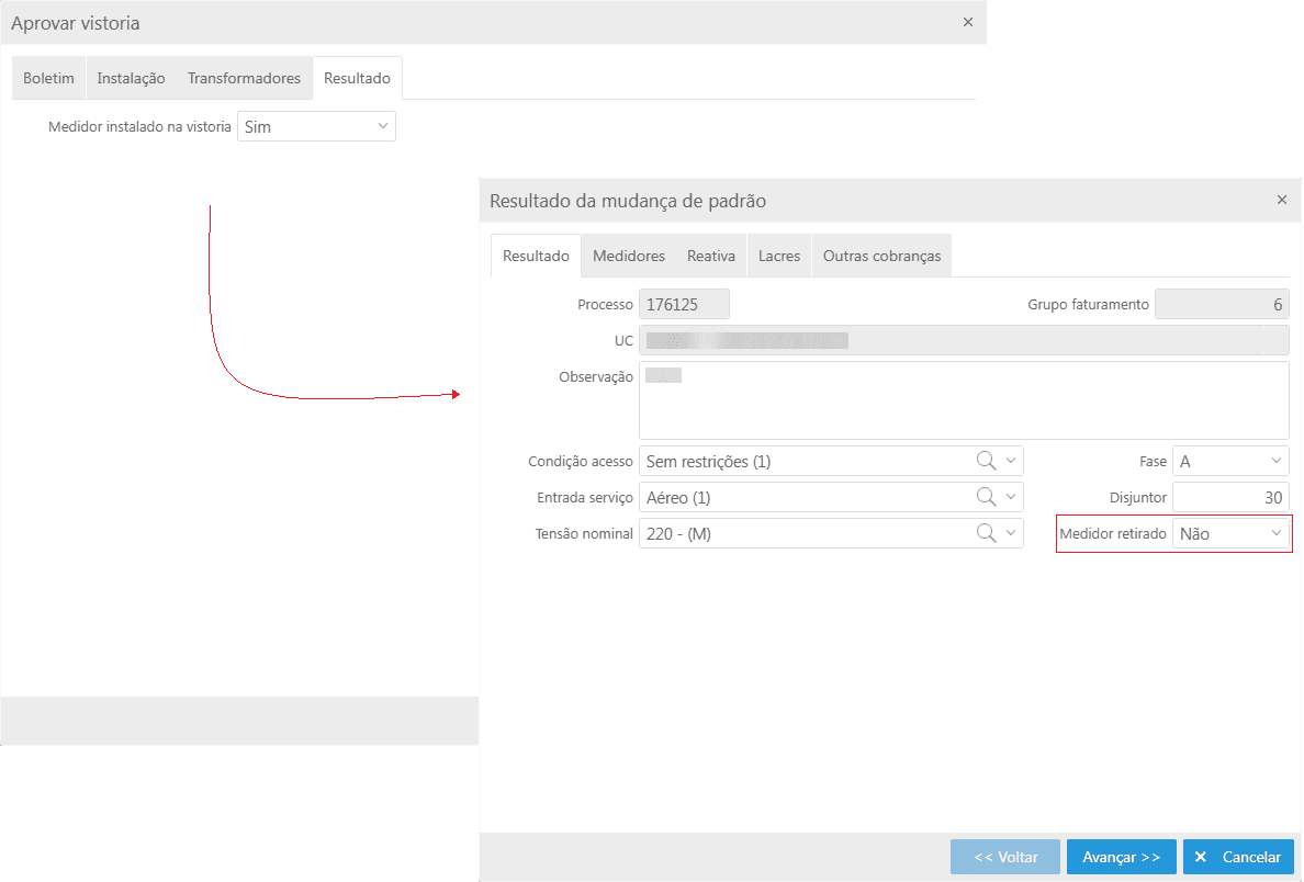 O preenchimento da informação "Medidor foi instalado na vistoria" na aba Resultado, não necessariamente indica a troca do medidor, podendo manter-se o mesmo que já estava instalado anteriormente na UC.