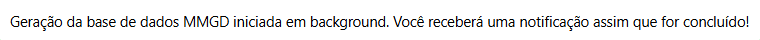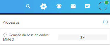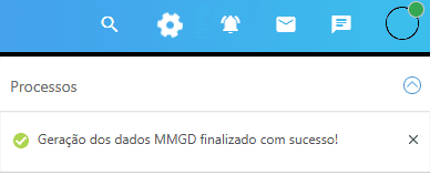 Ao finalizar a geração dos dados, será possível observar o informativo de conclusão, por meio da mesma engrenagem de acompanhamento do processamento mencionada anteriormente.