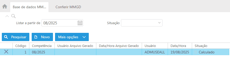 O segundo campo, Situação possui as opções Processando, Calculado e Arquivo gerado, seguindo a mesma ideia do primeiro campo o sistema fará uma busca dos registros existentes mas filtrando-os de acordo com a situação escolhida.