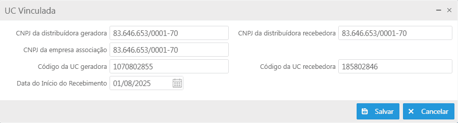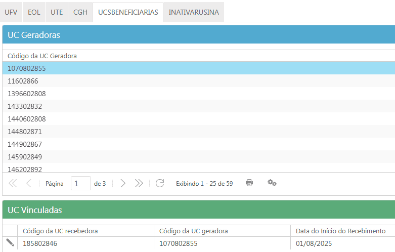 A descrição de cada campo constante nesta tela de edição pode ser conferido na seção UCSBENEFICIARIAS - Dados de Unidades Consumidoras Beneficiárias de Excedentes.