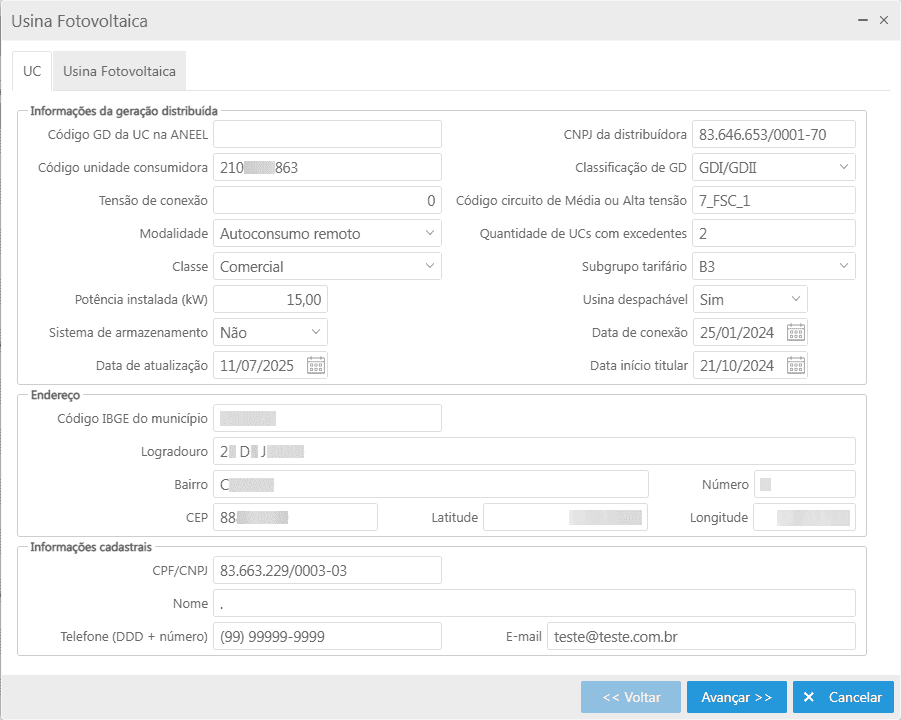 A descrição de cada campo constante nesta tela de edição pode ser conferido na seção UFV - Dados Usina Fotovoltaica.