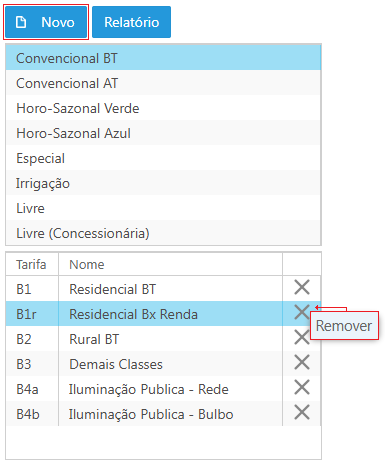 É importante salientar que com a criação da tabela através da opção Alteração de bandeira, os valores das tarifas líquidas de ICMS para todas as subclasses serão carregados zeradas, assim é necessário editar uma a uma preenchendo estes valores.